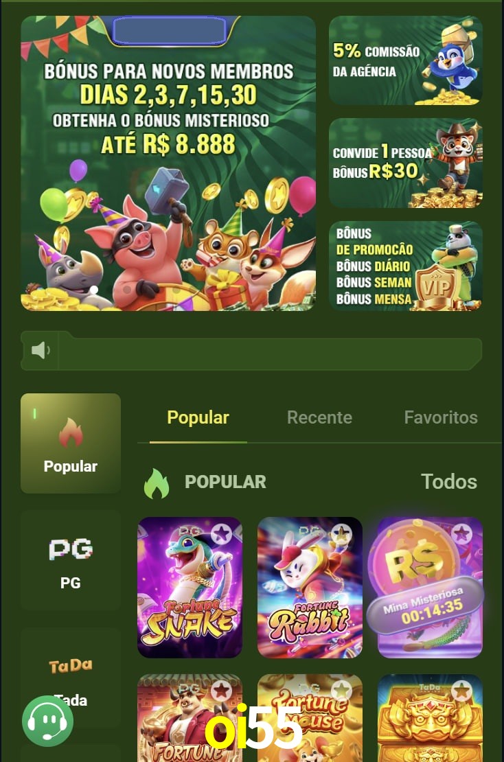 Com um design intuitivo, tecnologias avançadas e um sistema de pagamento rápido, o OI55 Game se tornou a escolha preferida dos gamers no Brasil. Embora essa opção se destaque por ser fluida e segura, a atração vai além disso. Por meio de sua infinidade de promoções atraentes e bônus generosos, o OI55 Game é luxuoso e transforma cada segundo passado na plataforma em uma oportunidade para os usuários dedicados ganharem mais.